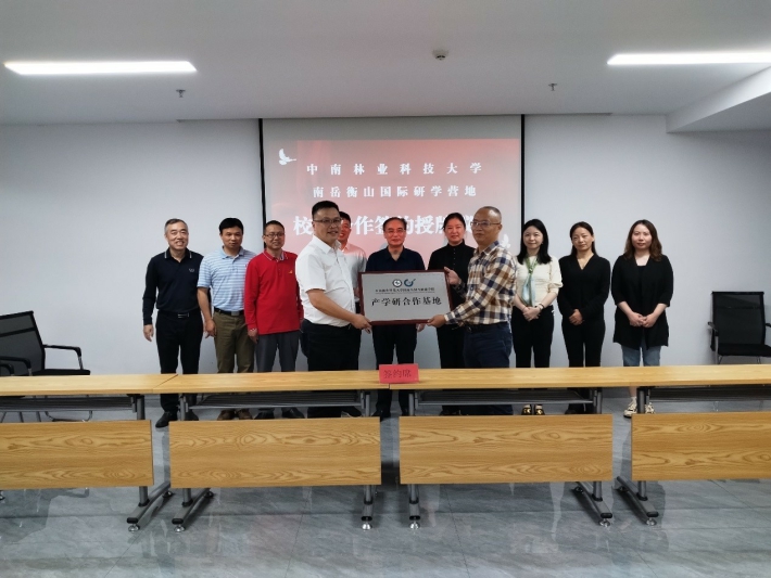 尹健副校长介绍了学校的办学特色、专业建设及人才培养等情况,并感谢企业对学校人才培养工作的大力支持。他表示,开展“访企拓岗促就业”专项行动,是深化产教融合、校企合作,拓宽毕业生就业渠道的具体体现,学校将以为契机,进一步加强校企供需对接、深度融合,建立常态化互动渠道,提高人才培养与企业需求的契合度。他提出,衡山自然资源丰富,可与我校林学、生态学、环境学、旅游学和材料学等优势学科形成共促高质量发展的合力,同时应利用好学生资源,共同助推企业构建人才智力支撑体系。随后,校企双方举行了《产学研合作协议》签订及授牌仪式。