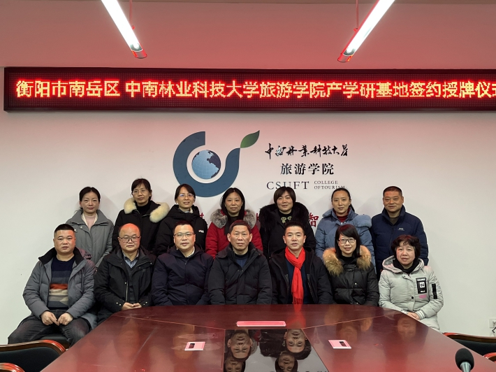 2022年2月22日下午,437437必赢国际网址旅游学院与衡阳市南岳区科技专家服务团在博文楼南1002会议室举行产学研交流与合作基地签约授牌仪式,旨在促进科研成果转化和人才培养,探索协同创新的产学研模式。必赢官网党委书记李波涛、副院长(主持工作)罗芬及其他班子成员出席了仪式。